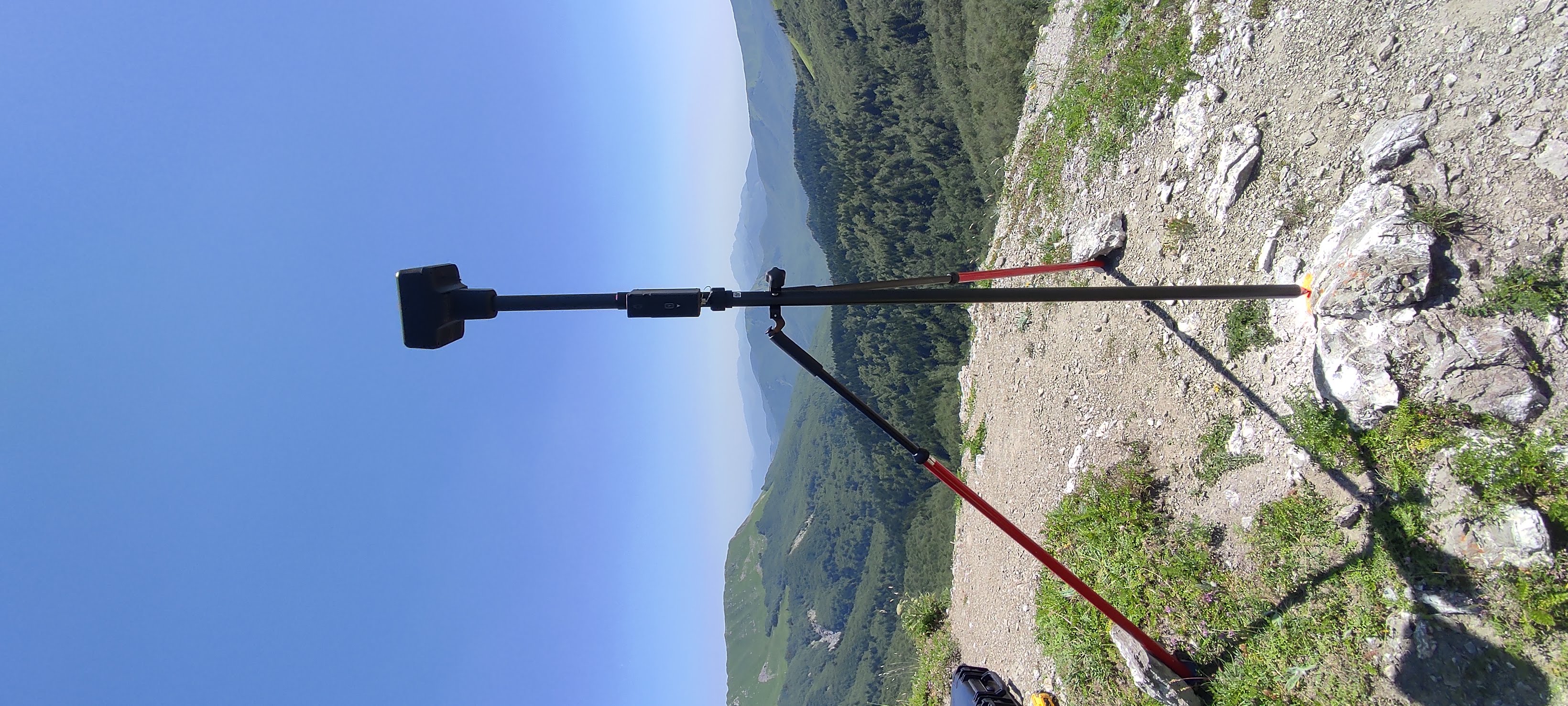 Mobile ground-based spherical imaging performed with a 360° photogrammetric sensor carried by an operator along a selected trail to map the terrain. |